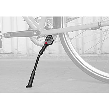 Le pied permet une adaptation sans outil aux différentes tailles de roues de 26 pouces à 28 pouces par simple rotation. La béquille arrière est composée d’un tube en acier super stable et revêtu et peut supporter un poids allant jusqu’à 30 kg.